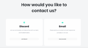 No online chat is available; the only contact listed is email. As they say, “write letters.” No other contact info is on the site, except for a Discord account link. However, in the “Support” section, the company states: “Our team of experts is at your service. We do not outsource support. Contact those who understand the product.”